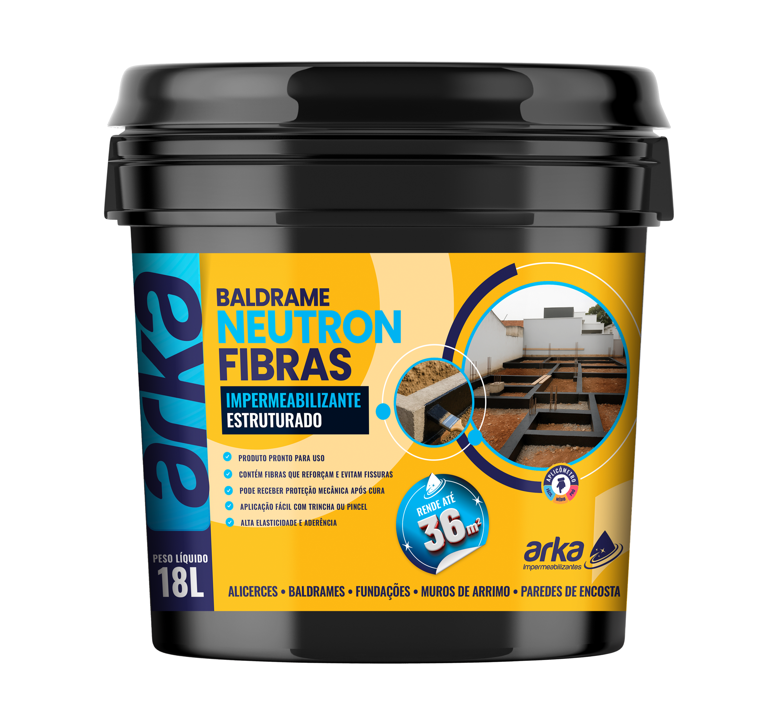 Un copolímero acrílico reforzado con fibras sintéticas estructurales, especialmente desarrollado para la impermeabilización de cimientos y vigas de fundación.