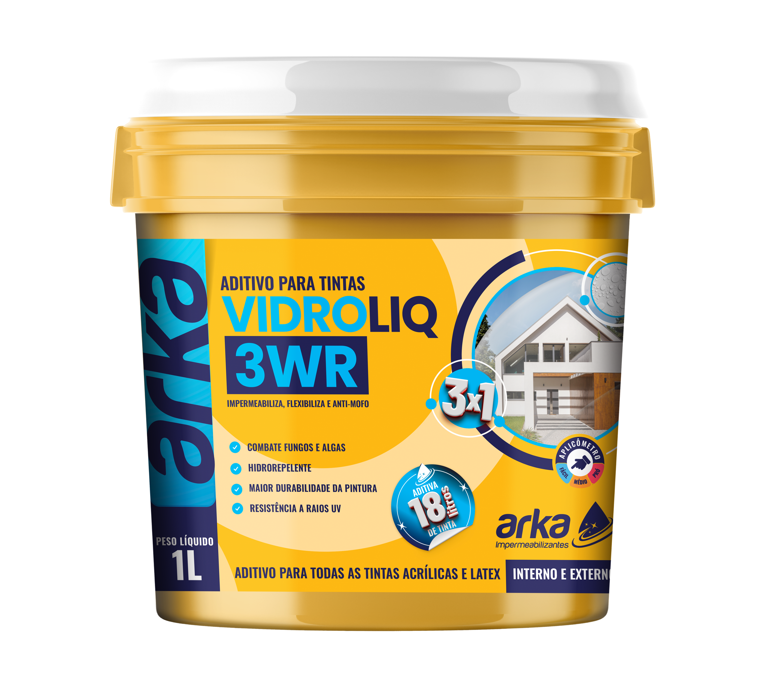 Un aditivo líquido multifuncional, desarrollado para ser incorporado a pinturas a base de agua (acrílicas y PVA), elevando la calidad y durabilidad del acabado.